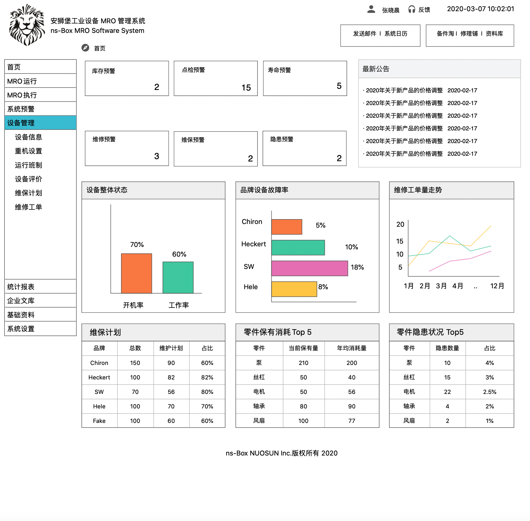 安獅堡(ns-Box)工業(yè)設備MRO管理系統(tǒng)(“ns-Box系統(tǒng)”)建立在大數(shù)據(jù)和云計算基礎上,用于企業(yè)工業(yè)設備(如各種數(shù)控機床、輔助設備、輸送裝置等)及其結(jié)構(gòu)零部件的專業(yè)維護、維修和運行管理。該系統(tǒng)是由諾盛企業(yè)自主設計和開發(fā)的軟件系統(tǒng)。